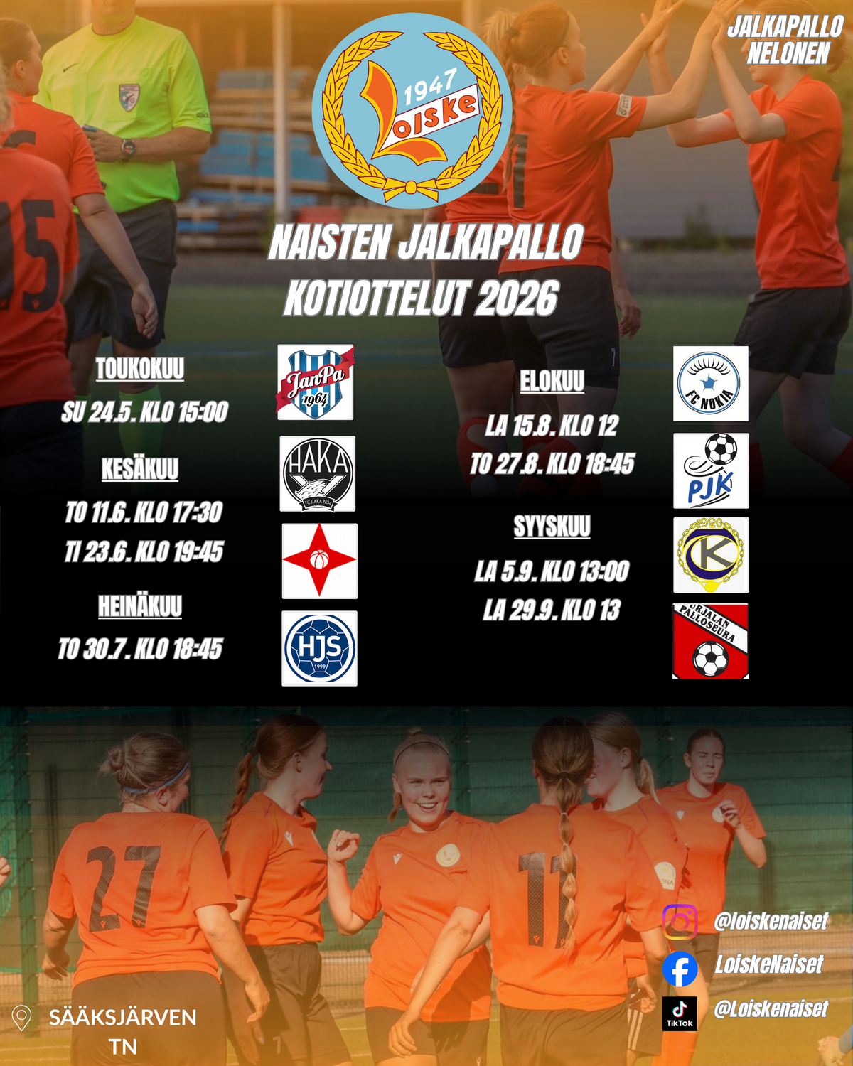 Sääksjärven Loiskeen naisten edustusjoukkue aloittaa kautensa naisten nelosessa vierasottelulla 27.4.2026. Vastaan asettuu HJS/2. Naiset pelaavat kotiottelunsa Sääksjärven tekonurmella. Ensimmäisen kerran tositoimiin koti(teko)nurmella päästään vasta 24.5.2026, jolloin vastassa on JanPa.